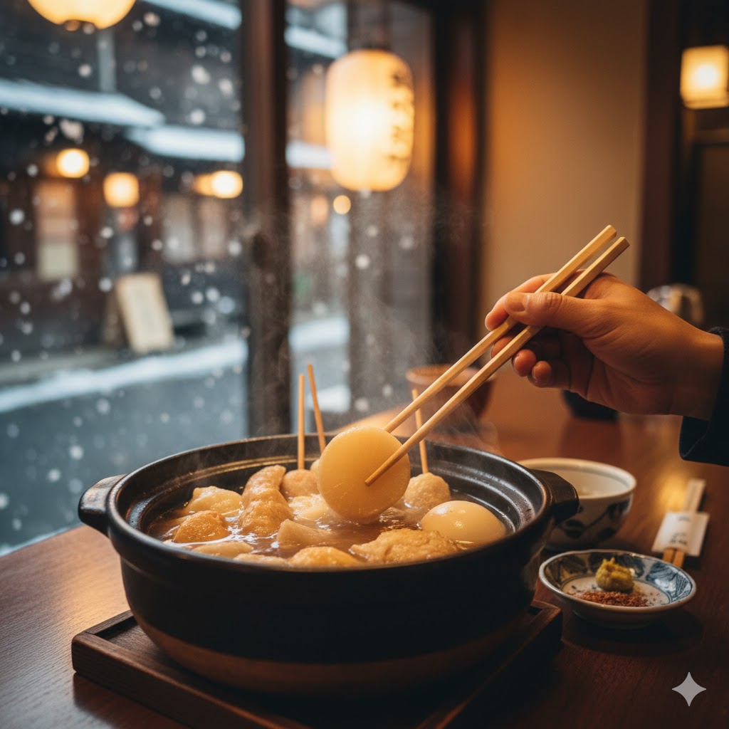 If you’re planning a winter trip to Kyoto, you’ve probably bookmarked temples, tea ceremonies, geisha districts, and noodle shops. But there’s one comforting dish most travelers miss until a local points it out: oden—a gently simmered assortment of tofu, vegetables, eggs, and more in a light, fragrant broth. On a crisp evening in Higashiyama or Gion, nothing warms you from the inside out quite like a hot bowl of oden.