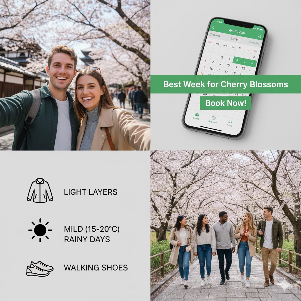 Think about this like concert tickets. Peak dates (April 5–10) are expensive and crowded, but you’re guaranteed the main show. Off-peak dates (April 1–4, April 15–30) cost less, feel less touristy, and you still get quality blossoms—just different timing.